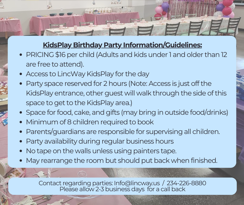 (LincWay KidsPlay is not a drop-off facility)